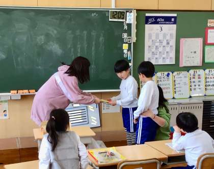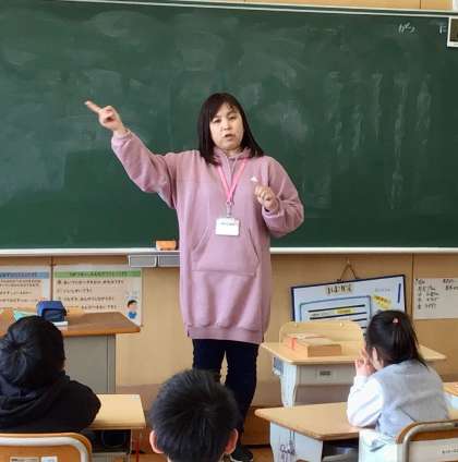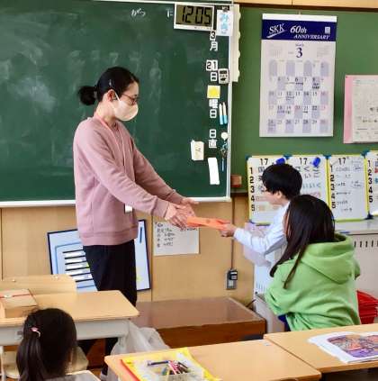 特別支援学級では、今日が最後の勤務となった学級運営補助指導員さんにお話をしていただき、みんなで感謝の気持ちを伝えました。