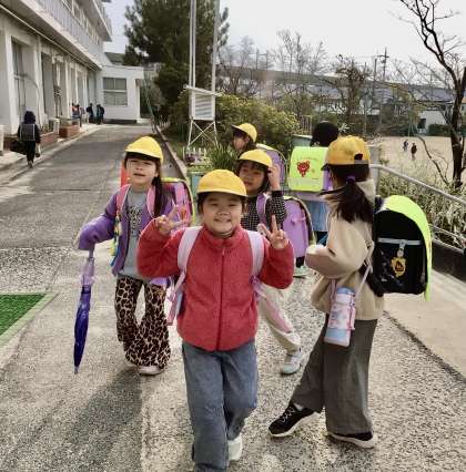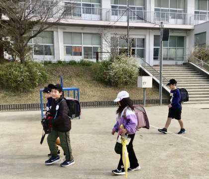 本日は、修了式、教室移動、学級活動などを行い、給食なしの一斉下校です。