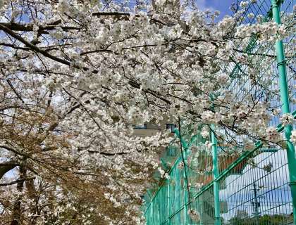 本校の中で、桜の木が一番密集しているプール裏の桜です。
