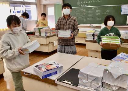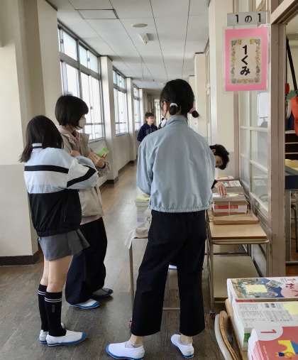 4月7日(月)の梅坪小(4)新6年生による入学式準備4