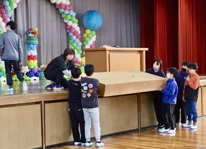 4月7日(月)の梅坪小(6)新6年生による入学式準備6