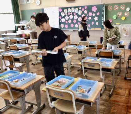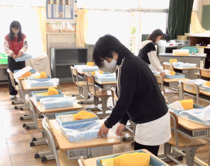 4月7日(月)の梅坪小(9)新6年生による入学式準備9