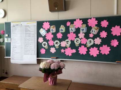 午前8時に、新しいクラス名簿や新しい担任が掲示で発表されました。