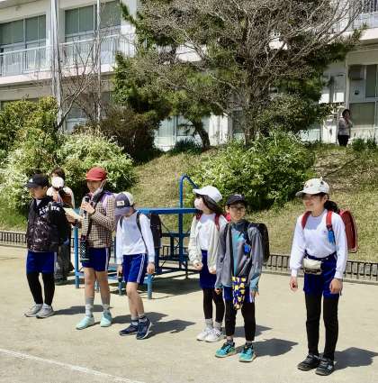 4月9日(水)の梅坪小(8)一斉下校・下校指導の様子