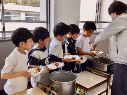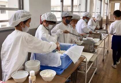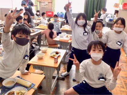 4月11日(金)の梅坪小(6)3年生の給食風景