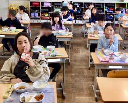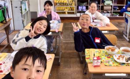 4月14日(月)の梅坪小(9)4年生の給食風景