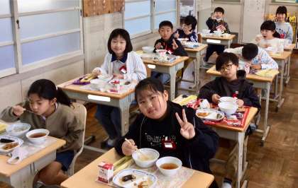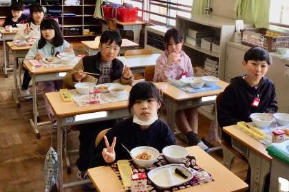 4月14日(月)の梅坪小(10)4年生の給食風景