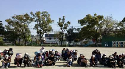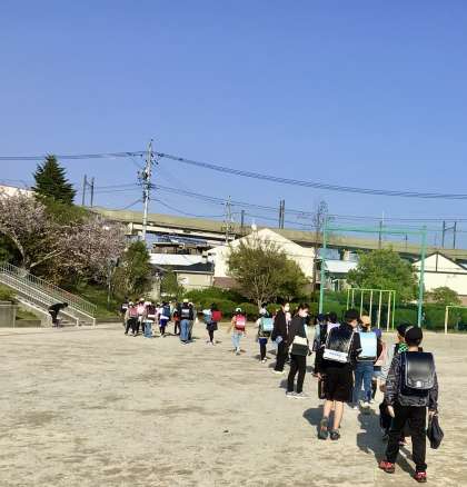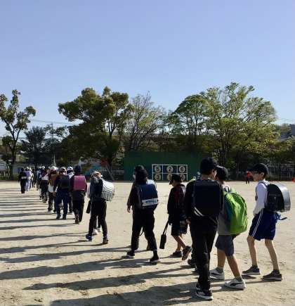 各委員会が終わり、運動場には子どもたちが無言の速足で集まってきました。
