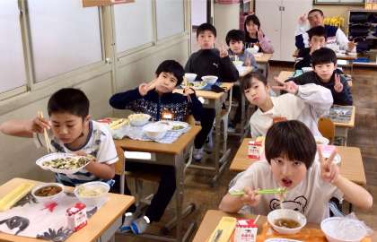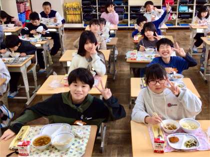 4月15日(火)の梅坪小(9)5年生の給食風景