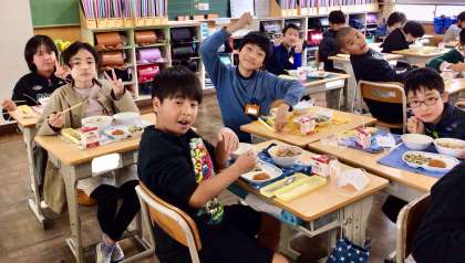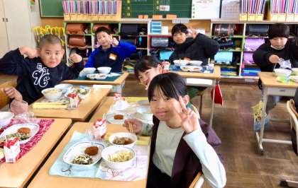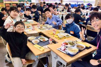 4月15日(火)の梅坪小(10)5年生の給食風景