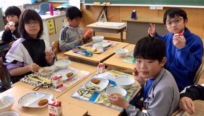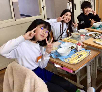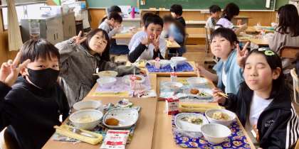 4月15日(火)の梅坪小(14)5年生の給食風景
