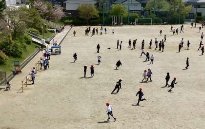 爽やかな天候のもと、休み時間の運動場は大にぎわい。