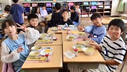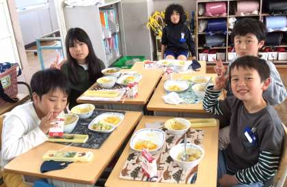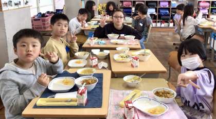 4月18日(金)の梅坪小(11)3年生の給食風景