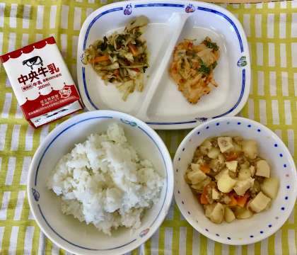 4月21日(月)の梅坪小(6)こうや豆腐のうま煮ほか!
