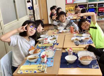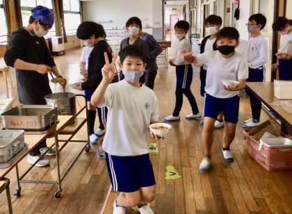 4月22日(火)の梅坪小(4)5年生の給食風景