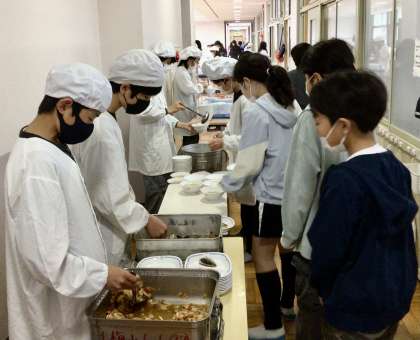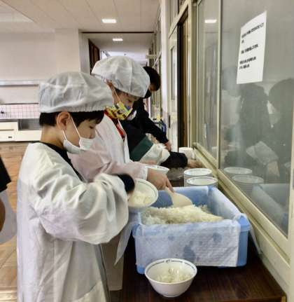 4月23日(水)の梅坪小(4)6年生の給食風景