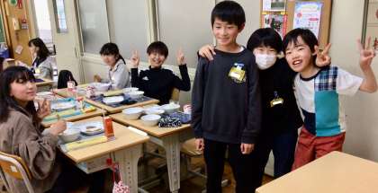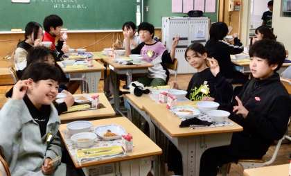 4月23日(水)の梅坪小(6)6年生の給食風景