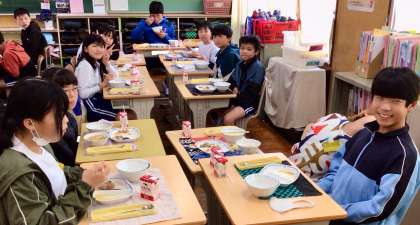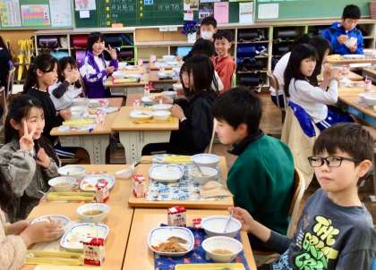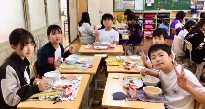 4月23日(水)の梅坪小(7)6年生の給食風景