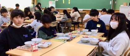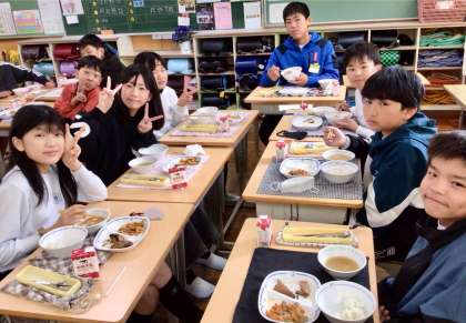 4月23日(水)の梅坪小(8)6年生の給食風景