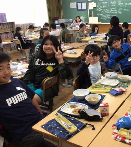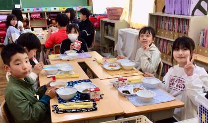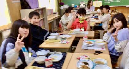4月23日(水)の梅坪小(9)6年生の給食風景