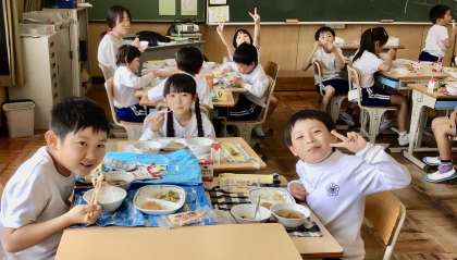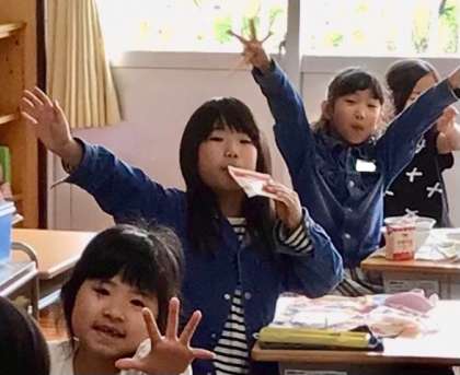 4月25日(金)の梅坪小(8)2年生の給食風景