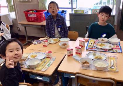 4月28日(月)の梅坪小(12)3年生の給食風景