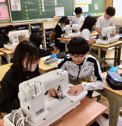 4月28日(月)の梅坪小(18)6年生 家庭科 ミシンの操作
