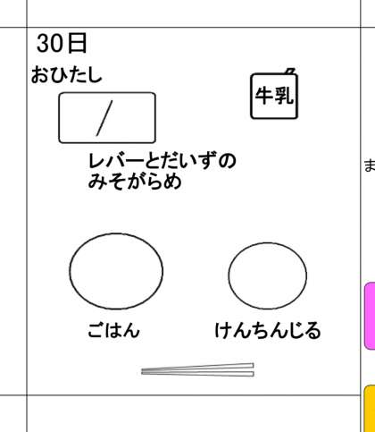 今日は、レバーと大豆の味噌がらめにけんちん汁。