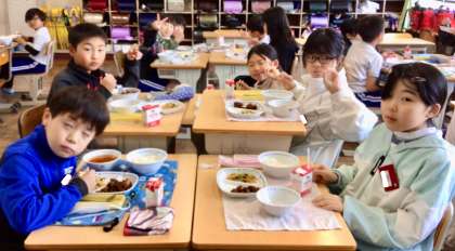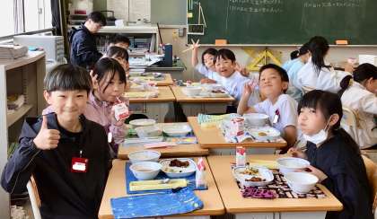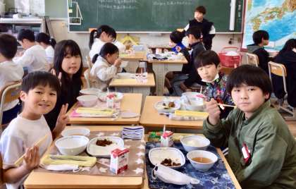 4月30日(水)の梅坪小(9)4年生の給食風景