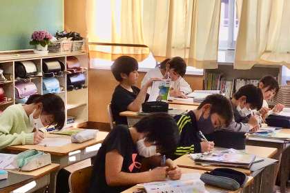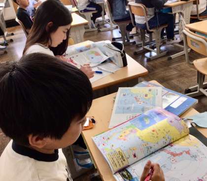 4月30日(水)の梅坪小(19)5年生の授業 社会 世界の中の日本