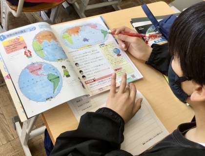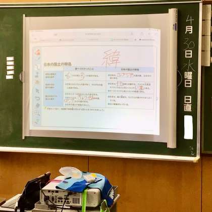 4月30日(水)の梅坪小(20)5年生の授業 社会 世界の中の日本