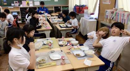 5月2日(金)の梅坪小(11)6年生の給食風景