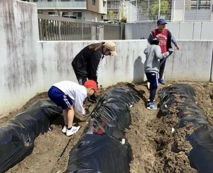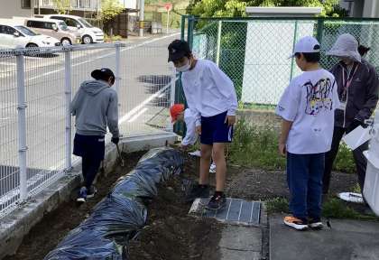 5月7日(水)の梅坪小(3)サツマイモを植えよう!
