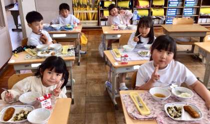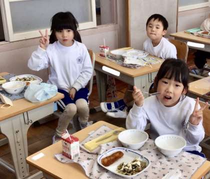 5月7日(水)の梅坪小(10)1年生の給食風景