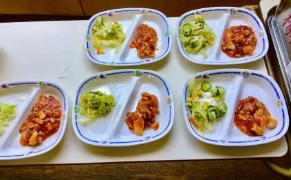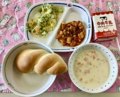 とり肉のトマト煮こみ、ポタージュスープと相性バッチリです。