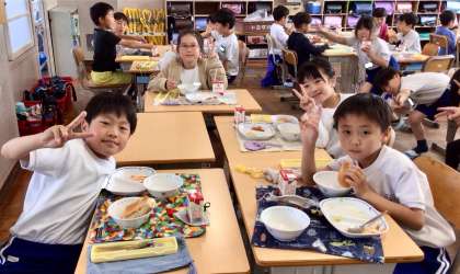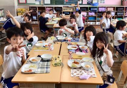 5月8日(木)の梅坪小(9)2年生の会食風景