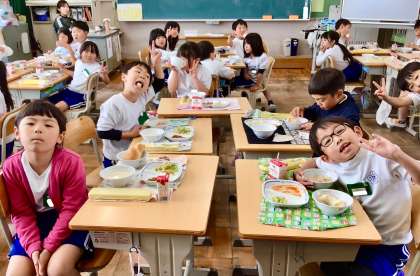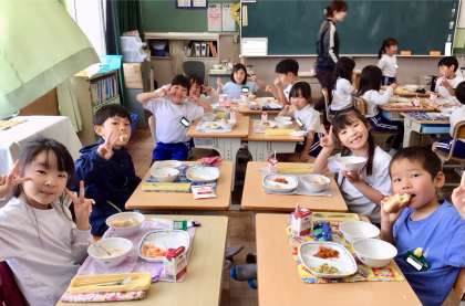 5月8日(木)の梅坪小(10)2年生の会食風景