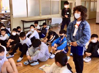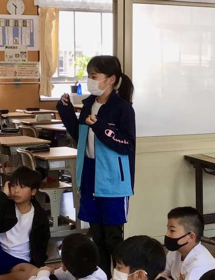 5年生も 身振り手振りをまじえて、3年生の朗読のいいところを褒めていました。