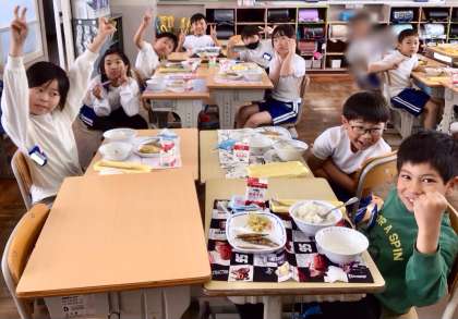 5月9日(金)の梅坪小(4)3年生の給食風景