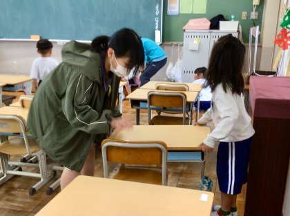 5月9日(金)の梅坪小(19)1年生の清掃風景