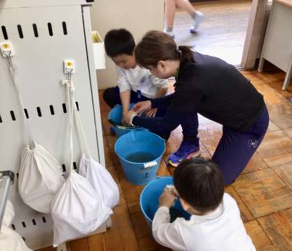 6年生や先生がやり方を丁寧に教えてきたことで、1年生の清掃への取り組みは向上しています!!