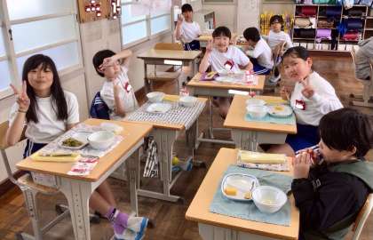 5月12日(月)の梅坪小(9)4年生の給食風景