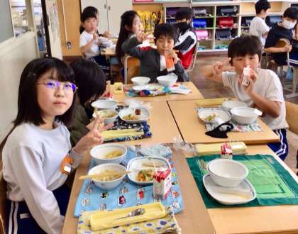 5月13日(火)の梅坪小(13)5年生の給食風景