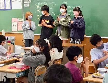 5月14日(水)の梅坪小(10)6年生の給食風景