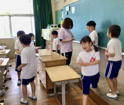 5月15日(木)の梅坪小(9)1年生の給食風景