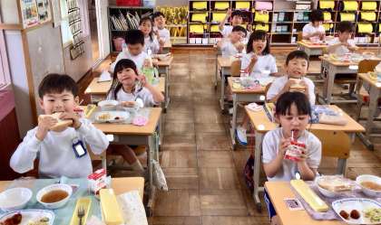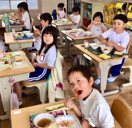 5月15日(木)の梅坪小(11)1年生の給食風景