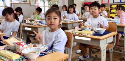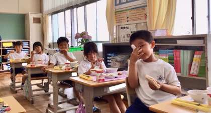 5月15日(木)の梅坪小(12)1年生の給食風景