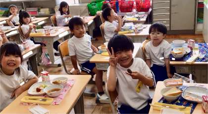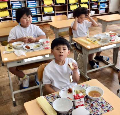 5月15日(木)の梅坪小(13)1年生の給食風景