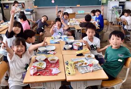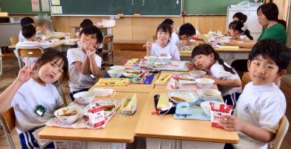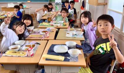 5月16日(金)の梅坪小(8)2年生の給食風景