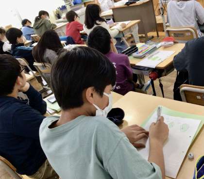 子どもたちは、葉の様子を熱心にスケッチしていました。